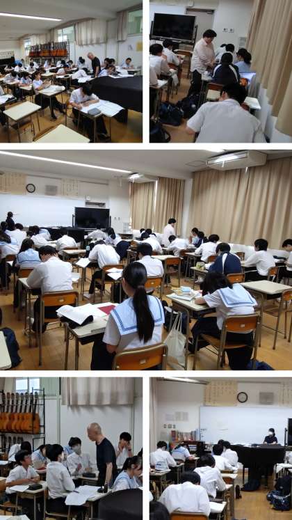 1年生は『美術室』、2・3年生は『音楽室』での学習会でした。多くの生徒が参加し、ON・OFFの切り替えもできていたように思います。