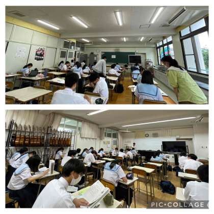 今日もテスト前学習会が開催されています。明日からいよいよ始まるテストに備えて勉強にも熱が入っていました。明日は理科・国語・社会です。睡眠もしっかりとってテストに備えましょう。なお、テスト中は給食がありません。