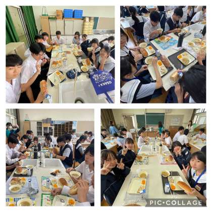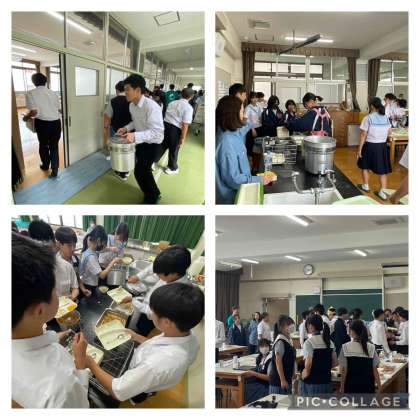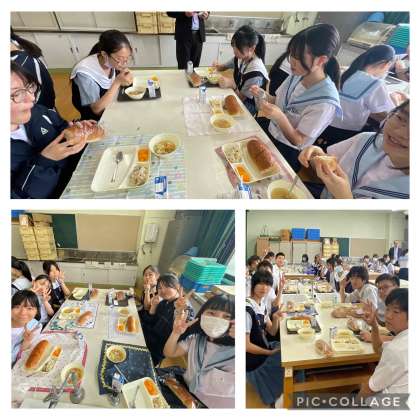 昼食は3年生の生徒と一緒に日本の給食を食べてもらいました。写真を撮りながら「好吃??(美味しいですか?)」と聞くとグッドサインをいただきました。気に入ってもらえたようでよかったです。