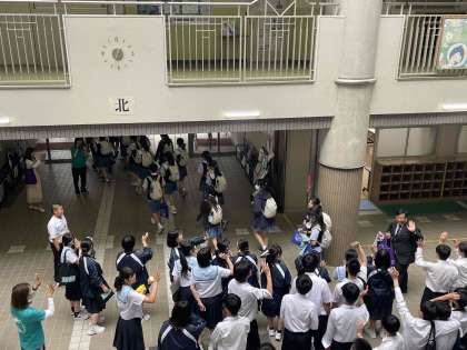 昭和中学校での体験はお昼までで終わり、最後に記念写真を撮りました。ここでの時間がよい思い出のひとつになっていると嬉しいです。