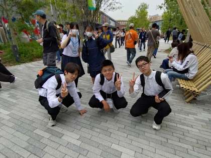 やっと子どもたちに会えました(3つの班)。昼食のとれる場所に行ったらいました。