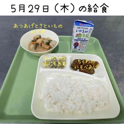 今日の給食の食材の一つ、さといもは東南アジアが原産のタロいもの仲間です。タロいもといえば、ちょうど1年生は社会の授業で“熱帯で育ちやすい食べ物”として勉強したのではないでしょうか?(教科書31ページを見て復習しよう)