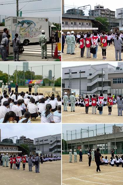 大規模災害に備えて、学年ごとに様々なプログラムが準備され、子どもたちの防災意識の向上に役立つ取組でありました。