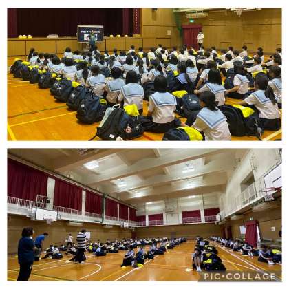 1年生はいよいよ明日から一泊移住に行きます。今日は午後から事前指導として、持ち物の確認と明日のオリエンテーリングの説明、諸注意などを行いました。明日はかなり天気がいいみたいで安心ですが、そのぶん気温が高くなるようです。体調が悪くならないように今日はしっかり睡眠をとって備えましょう。