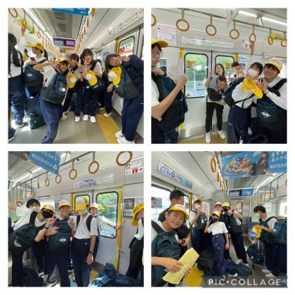 電車内ではマナーを守り、とても静かに乗っています(さすが昭和中です!)。まもなく堺市駅で乗り換えです。