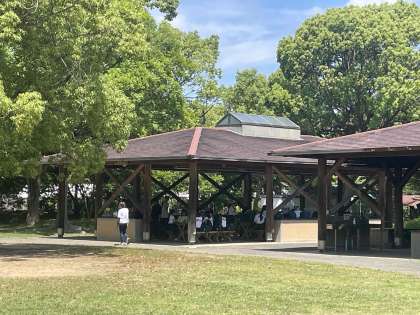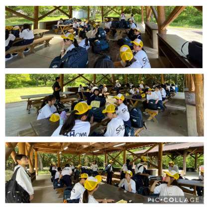 ようやくセンターに到着しました!さすがに暑い中を歩いてみんなへとへとです。水分補給をしながらしっかり休憩しましょう。