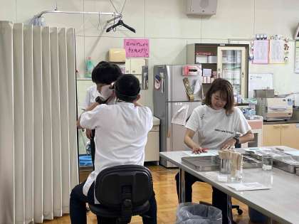 今日は耳鼻科検診ということで、耳と鼻とのどに病気がないかを調べてもらっています。ちなみに明日は尿検査(2次)ですので関係する生徒は忘れないようにお願いします。