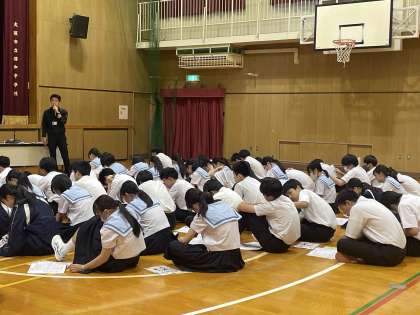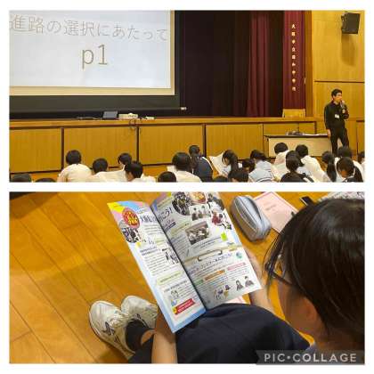 3年生は6限に体育館で進路学習を行いました。先日実力テストが終わり、いよいよ受験生としての自覚を持つ時期になりました。準備に早すぎることはありませんので、自分の進路についてしっかり考えていく機会にしてください。