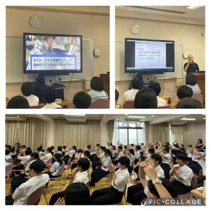 本日、1年生では阿倍野警察署・大阪府薬務課・阿倍野地区保護司会の皆さまにお越しいただき、薬物乱用防止教室を実施しました。先生方からのお話やDVD鑑賞、◯??クイズ、ロールプレイなどを通して薬物の恐ろしさを学びました。色々な情報を得やすい環境にあるからこそ、自分で自分の身を守ることが大切です。今日学んだことを忘れないでください。