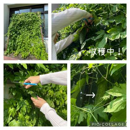 また、ゴーヤも少しずつ育っています。今日は試しに教頭先生がいくつか収穫されました。これからまだまだ育つと思うので楽しみです。