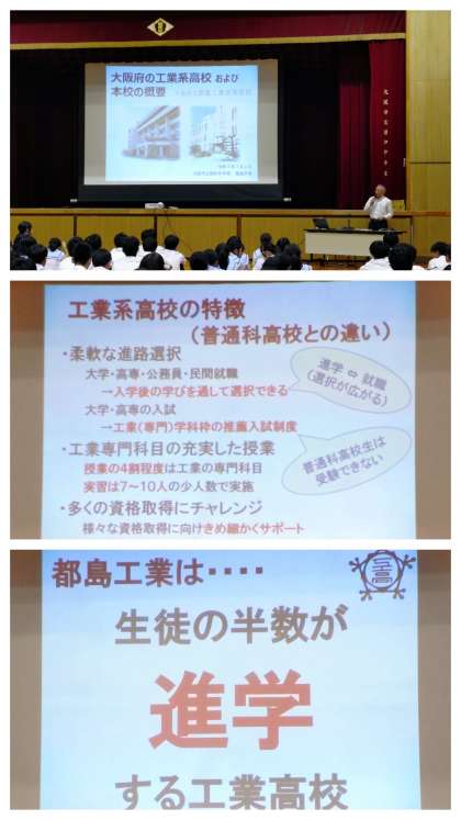 リーフレットなどの資料が配付され、パワーポイントの資料も工夫されており、それぞれの学校の特徴・特色について分かりやすく説明していただきました。「お忙しい中、本当にありがとうございました!」