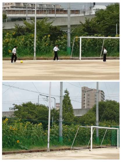 生徒の皆さん、とても暑いですが、グラウンドまで観に来てくださいね!