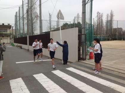 女子の部に続いて、男子の部がスタートです。今度は逆に、女子が男子のタイムを確認します。
