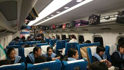 のぞみ99号は定刻の8時18分に新大阪駅を発車しました。列車に乗り込み、座席についたらさっそくおやつタイムになりました。