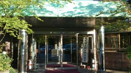 修学旅行2日目、朝から快晴です。宿泊しているホテル入口のようすです。