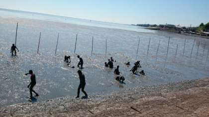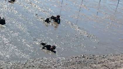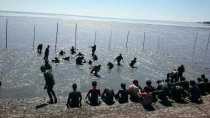 最後は男女別に競争です。泥の中では思うように体が動きません。