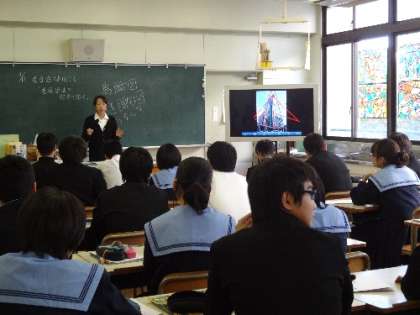 「遠近感を表現する方法の1つである透視図法を使って校舎を描く」授業が行われました。