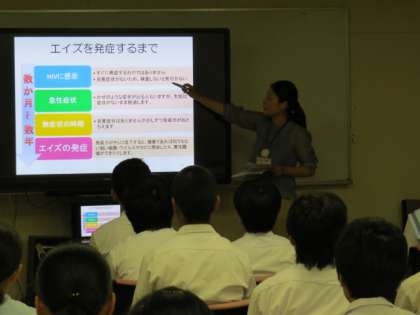 本日、3年生は阿倍野区保健福祉センターより保健師の方に来ていただき、性教育として「性感染症」についての学習をしました。