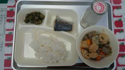 小学校の給食の開始に伴い、本校でも給食が再開しました。今日のメニューは、さごしの塩焼き、じゃがいもと一口がんもの煮もの、オクラのおかかいためにごはんと牛乳です。温かい給食はやはりおいしい?さっそく、おかわりする人も。しっかり食べて、心も身体も大きくなあれ。