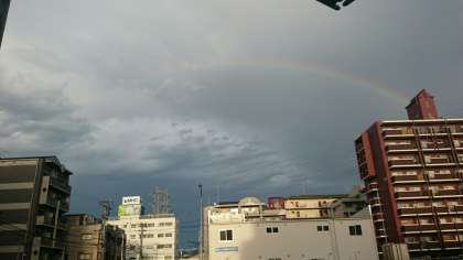 いきなりの大雨で驚きましたが、東の空に虹がかかっているのが見えました。