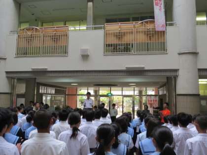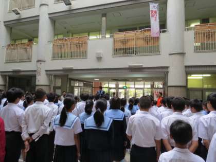 本日、後期の生徒会役員および学級委員の認証式を行いました。先日の生徒会選挙で信任された後期役員一人一人に校長先生から認証書が手渡されました。引き続き、学級委員を代表して3年2組の学級代表に認証書が手渡されました。その後、前期の生徒会役員一人一人から退任のあいさつと、後期役員を代表して、新生徒会長から就任のあいさつがありました。 みんな学校のためにがんばってくださいね。