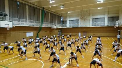 1年生はソーラン節の振り付け練習を行っています。リーダーを中心に熱のこもった練習です。なかなかハードで汗がでます。