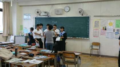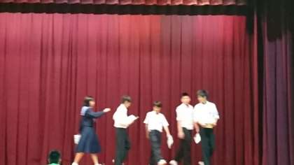 2年生は、各パートごとに取組を行っています。体育館では劇の練習を、教室では地域の方に演技を指導していただいています。