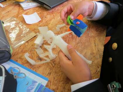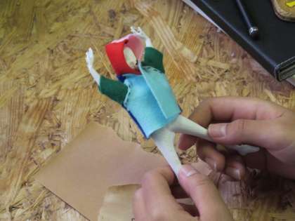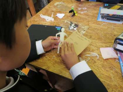 なめらかになるように、紙やすりで磨きます。フィギアの形によっては服が着せにくいこともあり、ちょっと一苦労している生徒もいました。