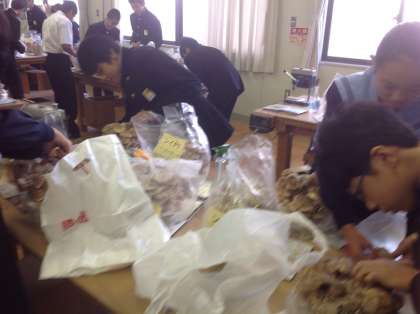 本日、1年技術科の授業で栽培している「しいたけ」の1回目の収穫を行いました。笠の大きさにビックリです。みんな一生懸命楽しそうに収穫していました。菌床はしばらく休ませたのち、再び栽培、収穫を繰り返せます。本日、ご家庭に新鮮な椎茸を持ち帰ります。ぜひ食卓でご賞味ください。