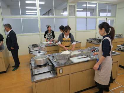 とれたての大根は調理室に運ばれ、保護者やボランティアの方々が味噌汁をつくってくださいました。