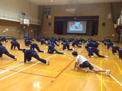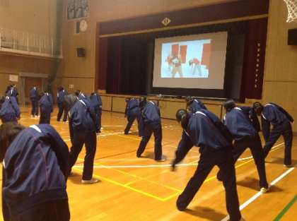 1年生はDVDを見ながら、男女共習でダンスの授業を行ないました。