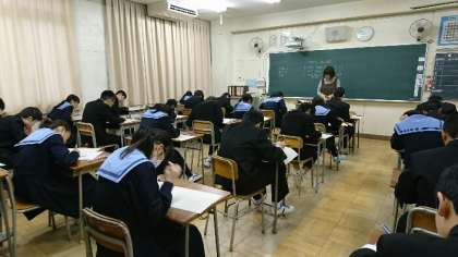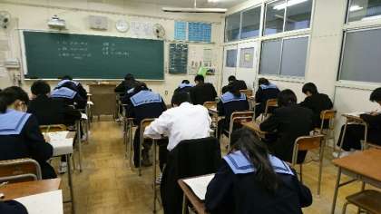 本日から3年生は、学年末テストです。今日は社会、数学、保健体育のテストを実施します。これが中学校で受ける最後のテストです。私立高校の受験を控え、みんな真剣に受けています。