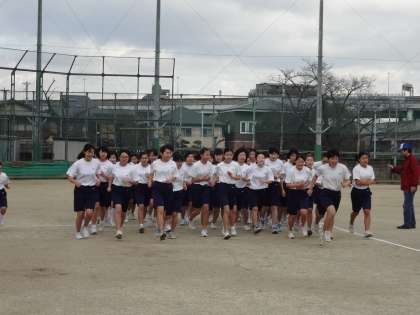 2月10日、恒例の1・2年生マラソン大会を行いました。2限の授業後に、1・2年生合同での行事です。心配された雨や雪もなく、耐寒マラソンにふさわしい天候でした。開会式とラジオ体操終了後、女子の部がスタートです。