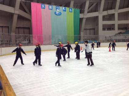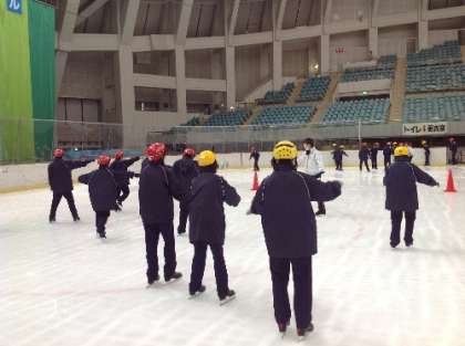 インストラクターの指導で、まずは立ち方から…。少しずつ滑れるようになりました。