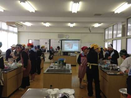 1年生は、1月から栽培していたキノコを使って、調理実習を行ないました。
