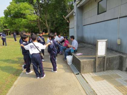 食後は班対抗のオリエンテーリングです。しかし、すべてのチェックポイントの問題が解けたという班が少なかったようです。中には地図が読めず、どこにいるのかわからない班も・・・・。