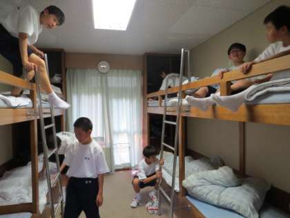 夕食前、生徒たちがくつろいでいる間、先生たちは「室内オリンピック」の準備です。