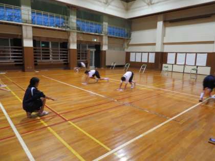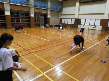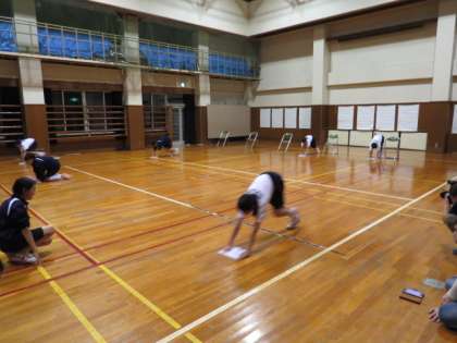 最後のゲームは「足腰鍛えろ競争」です。まさに、雑巾がけのリレーです。