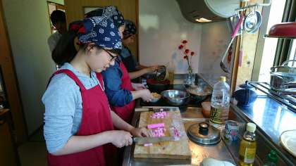 昼食の準備をしています。美味しそうな匂いがしてきます。