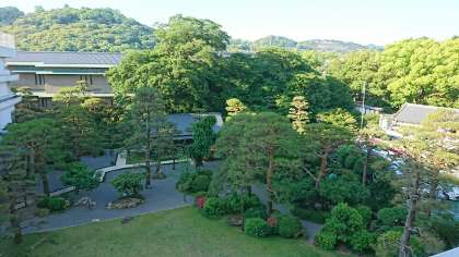 修学旅行最終日、今日も快晴です。起床して、これから朝食です。美しい中庭が見えます。