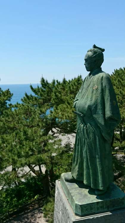 桂浜から太平洋を、坂本龍馬が見つめています。世界は広いぜ。