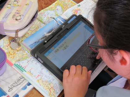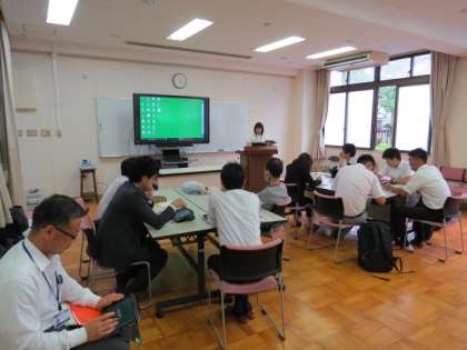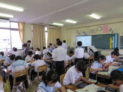 新任教員の方々は参観後、多目的室で、ICT機器活用実技研修を行いました。