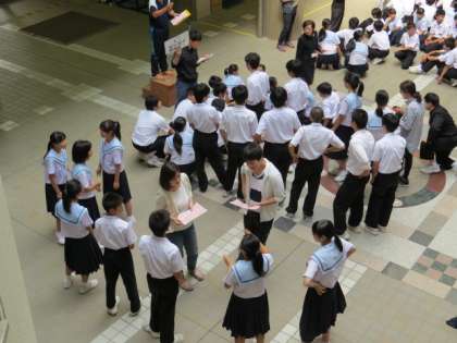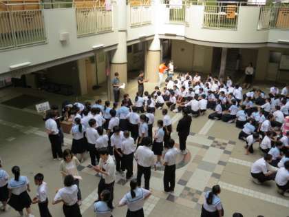 本日12日放課後の「地域別一斉下校訓練」に先立って、朝の集会時に集団下校班確認を行いました。
