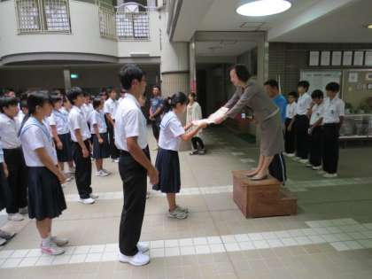 本日、2日(土)に行われた青少年育成大阪府民会議等が主催する「第39回中学生の主張〜伝えよう!君のメッセージ〜」において審査員特別賞(1名)、努力賞(2名)を受賞した生徒の表彰を行いました。