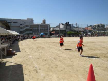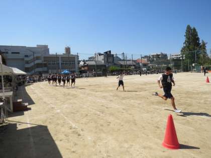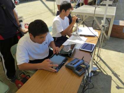 今年も放送はタブレット端末を使っています。女子1000m走では1年生が、男子1500m走では3年生が昭中新記録を出しました。
