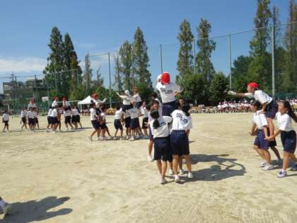 2年学年競技「騎馬戦」です。結果は1年に引き続き引き分けに終わりました。