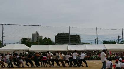 今日は校区小学校で運動会が行われています。長池、苗代小学校では、晴天のもと運動会が開催され、多くの来賓・保護者が見守る中、児童が元気いっぱい競技しています。また、PTA種目も行われています。