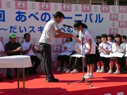 本日(10月9日)、工芸高校グラウンド、阿倍野区役所を会場に、あべのカーニバルが開催されました。開会式に続き、阿倍野区中学生絵画写真コンクールの表彰式が行われました。本校からは写真の部で、3名が表彰を受けました。