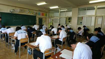 今日、明日は中間テストです。今日は、数学、理科、国語。明日は、社会、英語、保体(1・2年生)です。