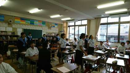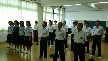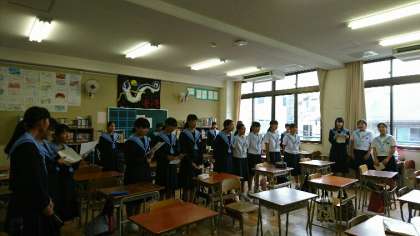 中間テストが終わり、次は文化発表会です。各学年とも午後は文化発表会の取組を行いました。1年生は歌の練習を行っています。
